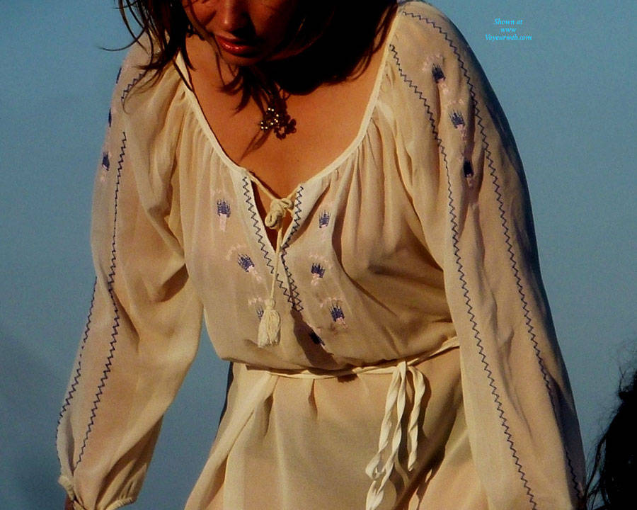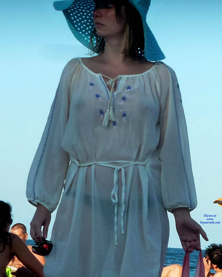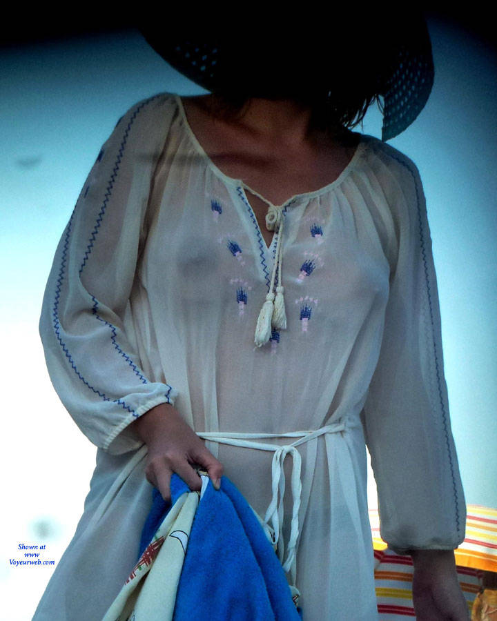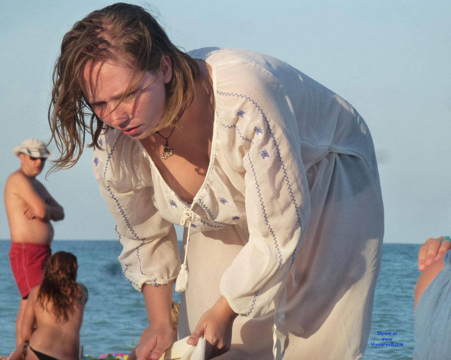 Same voluptous teen leave the beach in very see through clothes. I think she look very sery so!