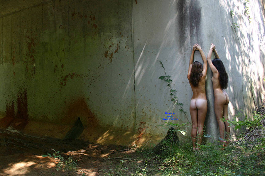 Walking along the trail they came upon a secluded road and played around nude under its tunnel.