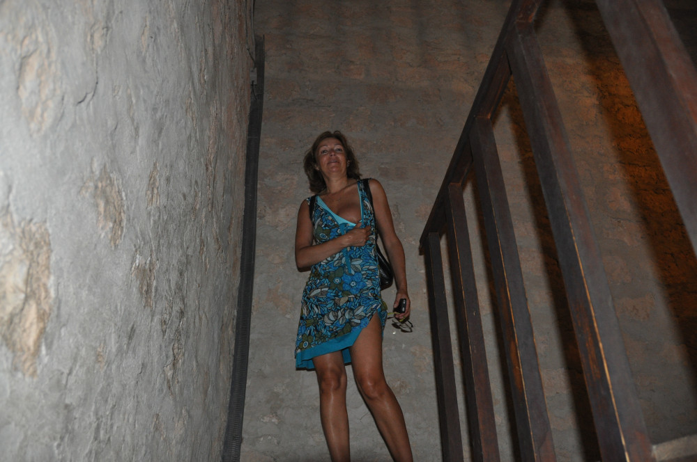 While visiting the church tower in Porec Maria felt hot and took of the shirt under her dress